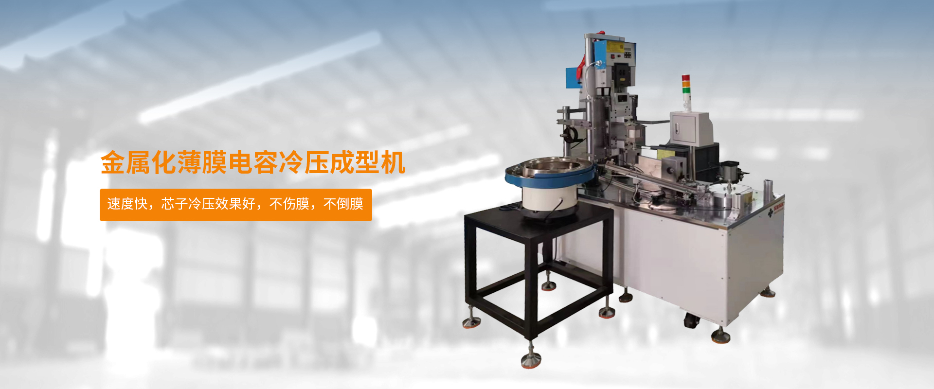 采用高速冲床作为动力,适用于5-15脚距的芯子冷压,速度快,芯子冷压效果好,不伤膜,不倒膜,单个冷压产品一致性好。比较于热压:省电,芯子一致性好(电性能、容量)